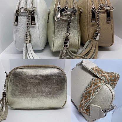 Mooie handtas met verstelbare schouderriem. Afmetingen 14 cm -20 cm volledig doorkleurt in hoge kwaliteit rundsleder . Verkrijgbaar in zwart , camel , okergeel , donkerblauw, beige, nude , taupe , grijs, koraal, goud, brons , wit , watergroen , jeans blauw, oranje en zilver , khaki, donkerbruin