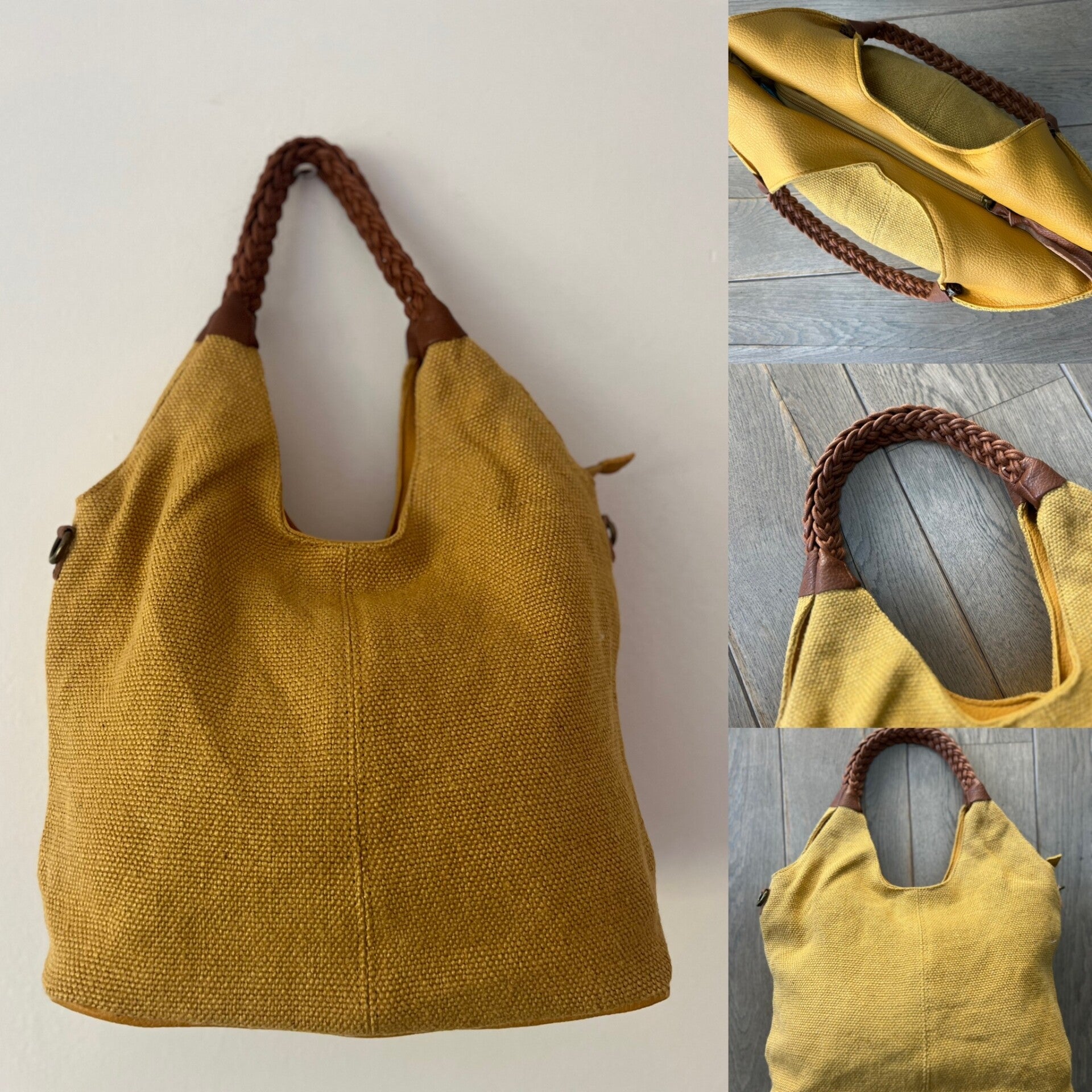 Prachtige tas in combo van jute met vegan Afmetingen 42x30 met afneembare en verstelbare schouderriem. De tas heeft een ritssluiting bovenaan en een middenvak met rits .